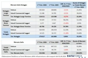 ECONOMIA NEL SETTORE AUTONOLEGGIO.Il noleggio veicoli sfiora il 34% di quota nelle immatricolazioni nazionali nel primo trimestre 2026