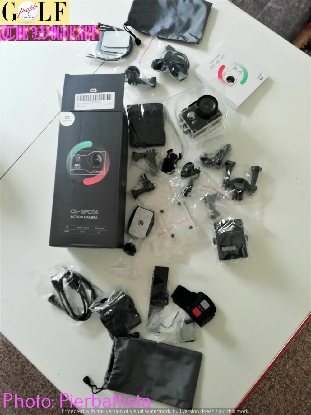Nella nostra scatola vi sono molti accessori, tra cui due bustine in simile stoffa lucida sul tono del grigio per contenere l’apparecchio. Ma avremmo preferito qualche cosa di più coprente e ideale per una macchina fotografica delicata, imbottita. Con alcuni piccoli accessori per inserirli negli appositi sostegni, alla conta dei pezzi degli accessori sono molti, quasi in doppia copia come se avessero paura che forse potrebbero spezzare o rompere? E’un caso? Iniziamo questo test su un dispositivo tecnologico, nostri lettori, ancora poco avvezzi alle novità, magari per i tanti giocatori di Golf che vogliono rivedere le proprie capacità, magari avendo con sé la piccola Action Cam durante una prova di Golf o di una piccola lezione! Che dite? Certamente con tutti gli accessori per collocarla sugli appositi supporti che si acquistano a parte, per poterla poggiarla su vetro de parabrezza esterno o interno dell’auto. O sulla bicicletta! Moto o su casco della moto, su indumenti. Abbiamo fatto la prima prova durante una conferenza stampa, mettendola su un tre piedi! Certo è dovuto inserirla nel suo involucro di plastica duro, negli appositi sostegni. Inoltre con il vostro smartphone, potete con l’applicazione avere con il wi-fi della Action Cam. Leggera e compatta, non touche, no bluetooth, applicazione Apple, Androide da acquisire su Google Play che riproduce ciò che vi sta accanto premendo semplicemente un tasto. Visionare in diretta i video dal vostro cellulare e per poi inserirla indiretta sui social. Tra gli accessori ha il telecomando con due pulsanti uno rosso e l’altro bianco! Che si può mettere al polso come un orologio. Dove potete decidere di scattare foto od iniziare un video con un ottimo grandangolare. Oramai molti hanno queste Action Cam, sono tutti abbastanza simili, ma noi ci rivolgiamo a chi è ancora ancorato alle piccole macchine fotografiche! O nella semplicità! Che però non posso andare sotto acqua o magari stare su tetto di un’autovettura durante il viaggio un test drive. Essa si ricarica tramite cavo Usb ed in genere durano dai 60 minuti alle 8 ore. Inoltre ha la tecnica Time Lapse, la visione del video a 25 fotogrammi al secondo fa si che il tempo, nel video finale, scorre molto più velocemente del normale, altrimenti sarebbero impercettibile ad occhio nudo come il movimento delle nuvole. Per i vostri documentari o video semplici, per renderli suggestivi. E perché no, per i vostri selfie con supporto. Perché acquistarla? E’ leggera maneggevole, facile da usare, qualità e prezzo conveniente! Tutto questo grazie anche all’avanzatissimo sensore SONY di cui dispone, al chip evoluto e ai 7 strati di lenti ottiche in vetro che mette a disposizione degli utilizzatori. Attivando la funzione EIS potrete ottenere video privi di vibrazioni e super fluidi, anche in presenza di forti scuotimenti e in situazioni in rapido movimento. Per questo motivo, la action cam COOAU CU-SPC03 è tra le preferite degli sportivi estremi. Immaginate di utilizzarla durante una sessione di mountain bike o in un giornata dedicata agli sport acquatici. Ma non finisce qui: la fotocamera è infatti dotata schermo da 2 pollici e Wi-Fi integrato. Questo se acquistate con lo schermo sensitivo touche con pannello IPS da 2 pollici non solo mostra immagini più chiare e luminose dei display LCD. Ma se volete anche di utilizzare la fotocamera più rapidamente, e in modo più intuitive fotocamere senza touche screen. Questa caratteristica si rivelerà fondamentale durante la vostra attività sportiva ad alto tasso di adrenalina anche durante la gara o soltanto giocare per il relax a Golf tra amici. Altre funzioni che potreste considerare utili sono: le sette diverse modalità video (slow motion, registrazione in loop, video time lapse, modalità auto, correzione distorsione, modalità misurazione, modalità immersione) e le sette modalità foto (foto normale, foto time lapse, foto in sequenza, autoscatto, modalità misurazione, esposizione lunga, modalità immersione). Questa fotocamera è subacquea, dotata di una robusta custodia impermeabile, che vi consentirà di portarla con voi mentre fate sport. Infatti potrà arrivare fino a 40 metri di profondità. La custodia servirà per proteggere la fotocamera da rocce, polvere e graffi. Inoltre, attivando la modalità immersione potrete portare immediatamente un contrasto del colore più accurato e un mondo sottomarino più realistico senza filtro rosso. Grazie a questa sua capacità potrete utilizzare questa action cam per fare immersioni, surf e tanti altri sport acquatici, ma non solo. Batteria e telecomando