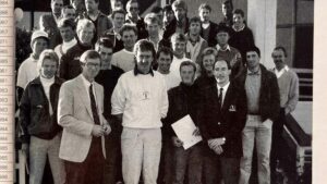 Una foto tratta dall’Annuario Pro-Golf del 1989 che ritrae Mike Stewart (al centro a destra) insieme ai giocatori diplomati alla Q-School