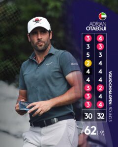 L’austriaco ha riconquistato il vantaggio di due colpi grazie a un birdie alla decima buca, ottenuto con un colpo dal bunker, ma Otaegui lo ha raggiunto in vetta con due birdie alla 16ª, chiudendo il giro a 16 colpi sotto il par.