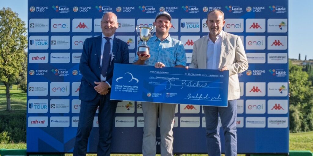 Al Golf Nazionale (par 72) di Sutri (Viterbo) Juan Carlo Ritchie si prende tutto. Con un totale di 268 (69 63 68 68, -20) colpi ha vinto l’Italian Challenge Open e festeggiato il terzo successo stagionale, il secondo consecutivo dopo quello arrivato la scorsa settimana all’Open de Portugal, che gli permette di tornare a giocare, da subito, sul DP World Tour. Nel torneo dell’HotelPlanner Tour, inserito anche nel calendario dell’Italian Pro Tour, il circuito di gare nazionali e internazionali organizzate dalla Federazione Italiana Golf in collaborazione con il suo Official Advisor, Infront Italy, bottino pieno per il sudafricano. Al 31enne di Standerton anche un assegno di 48.000 euro su un montepremi complessivo di 300.000 e la soddisfazione, questa settimana, di aver peraltro condotto il suo team al successo nella Pro-Am d’apertura. In testa al termine del “moving day” con lo svedese Robin Petersson, poi 2/o con 270 (-18) al fianco del suo connazionale Christofer Rahm, Ritchie ha chiuso subito i giochi nel quarto round realizzando sette birdie (otto quelli in totale, con un bogey e un triplo bogey nel finale, alla buca 18) consecutivi (dalla 1 alla 7) che gli hanno permesso di prendere la fuga.